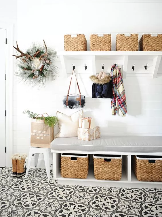 如果家里常住的人數(shù)不多的話,更建議只裝隔板架,其它的比如板凳或掛鉤就不要布置了,直接留白,這樣既可以保持空間的通透,整個空間的視覺也會有擴(kuò)充的效果。