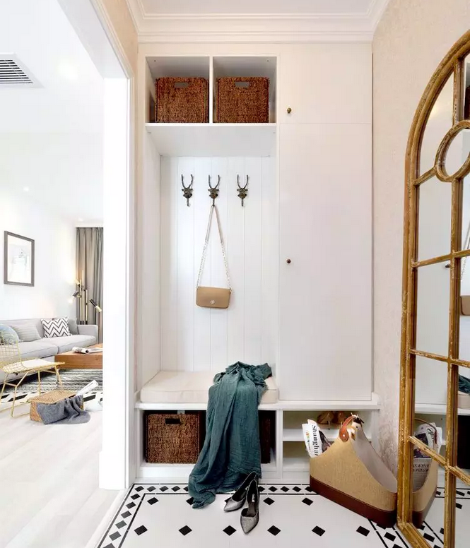 那么家里沒有玄關(guān)的戶型,要怎么補(bǔ)救?這個要分兩種情況,如果進(jìn)門空間比較緊湊,那就想方法放個鞋柜,實(shí)現(xiàn)收納功能,如果進(jìn)門空間充足,就可以設(shè)置一個隔斷,實(shí)現(xiàn)玄關(guān)區(qū)的獨(dú)立。