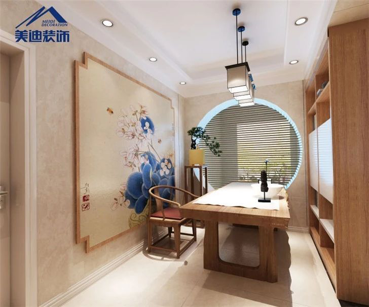 雖說(shuō)書房的裝修風(fēng)格需要與房屋的整體裝修風(fēng)格相似,但是也要考慮到書房的功能性,應(yīng)該展現(xiàn)比較雅致、清幽的風(fēng)格效果。此外,書房的顏色要柔和,使人平靜,最好以冷色為主,如藍(lán)、綠、灰紫等,盡量避免跳躍和對(duì)比的顏色。