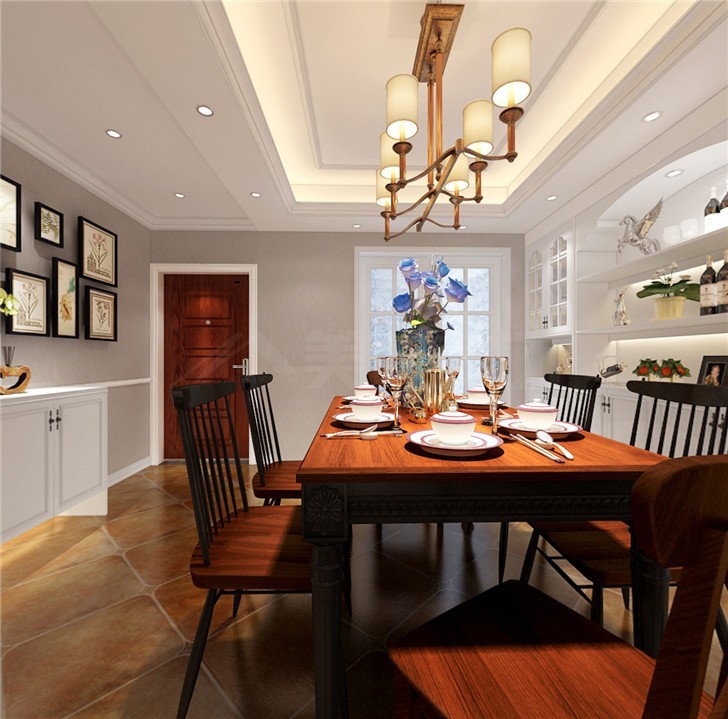 3、餐廳色彩搭配也要注重整體感。墻面可用中間色調(diào),天花板色調(diào)則淺,以增加穩(wěn)重感。在不同的時(shí)間、季節(jié)以及心理狀態(tài)下,人們對色彩的感受會(huì)有不同的感覺。這時(shí)可利用燈光作為輔助手段來調(diào)節(jié)室內(nèi)色彩氣氛,以達(dá)到利于飲食和愉悅身心的目的。