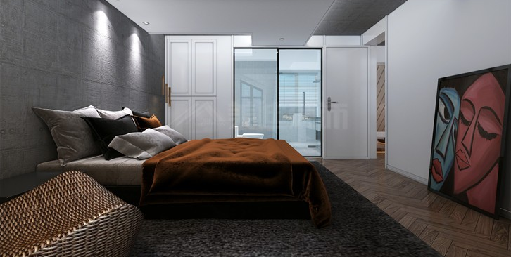 霜灰色墻體在陽(yáng)光下呈現(xiàn)光澤肌理,主臥氛圍松弛且優(yōu)雅。房間里的每一件物品都恰到好處,賦予空間抽象理性與優(yōu)雅感性的交融之美