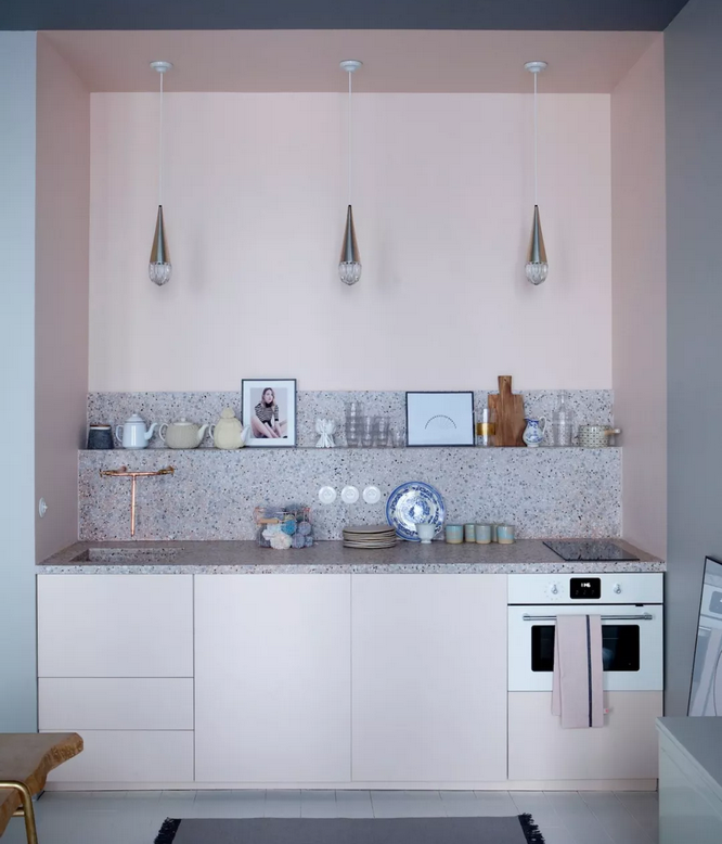 古老的水磨石原本平易近人,但其斑駁陸離的紋理與配色,卻帶來美輪美奐的夢幻感。隨著科技的發(fā)展,現(xiàn)在的水磨石,極為平滑,它的曲線表現(xiàn)力,非常適合用于像現(xiàn)在所盛行的藝術(shù)裝飾和風(fēng)格,如果你對廚房有特殊要求,廚房臺面用水磨石簡直太美了,水磨石的回歸,是一種追憶,也是未來的一種裝飾趨勢。