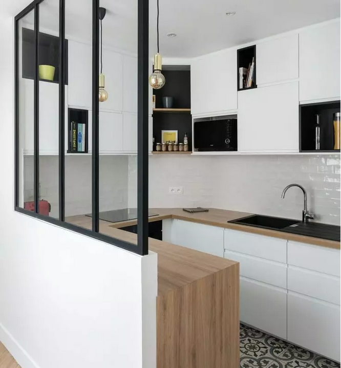 溫潤的實(shí)木擁有美麗的木紋,適合用在多種風(fēng)格的廚房中,即使是使用了大量玻璃或者不銹鋼材料的現(xiàn)代冷峻風(fēng)格廚房中,因?yàn)閷?shí)木的加入,也會多一分溫暖的感覺。