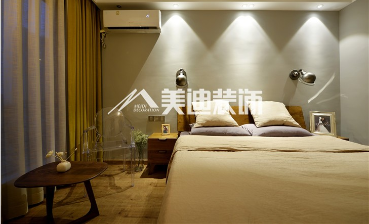 ▲ 主臥同樣使簡(jiǎn)潔的設(shè)計(jì),以矮凳代替床頭柜,別具巧思。推拉門的背后就是衣帽間,充分滿足屋主的儲(chǔ)物需求。