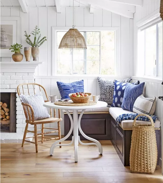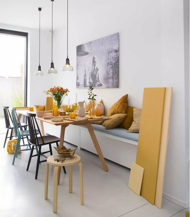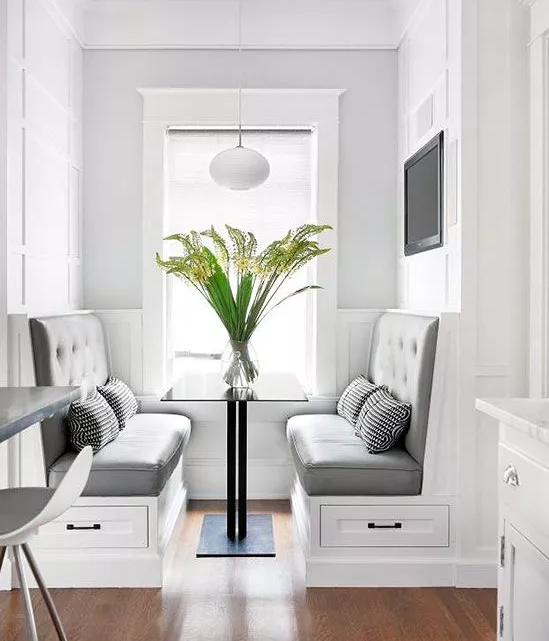 L形的卡座通常設置在拐角位置,在充分利用角落的同時,也增加了收納空間,同時卡座區(qū)還為家增添了用餐、休閑等功能。
