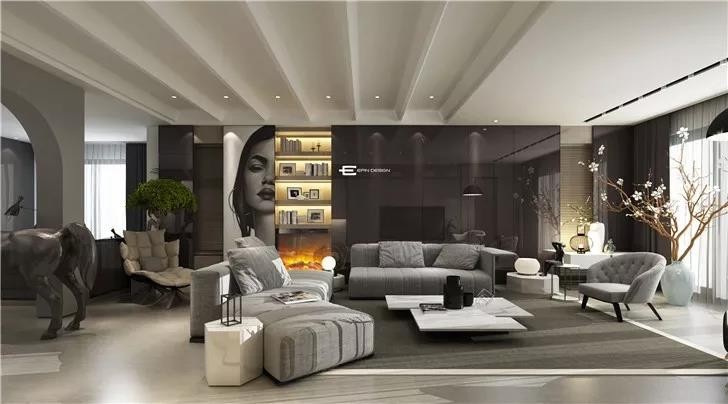 客廳:強(qiáng)調(diào)灰白之間的極致碰撞,從視覺上拉伸空間感。除色彩外,設(shè)計師也從材質(zhì)、空間的細(xì)膩處來傳達(dá)時尚的獨(dú)到之處。