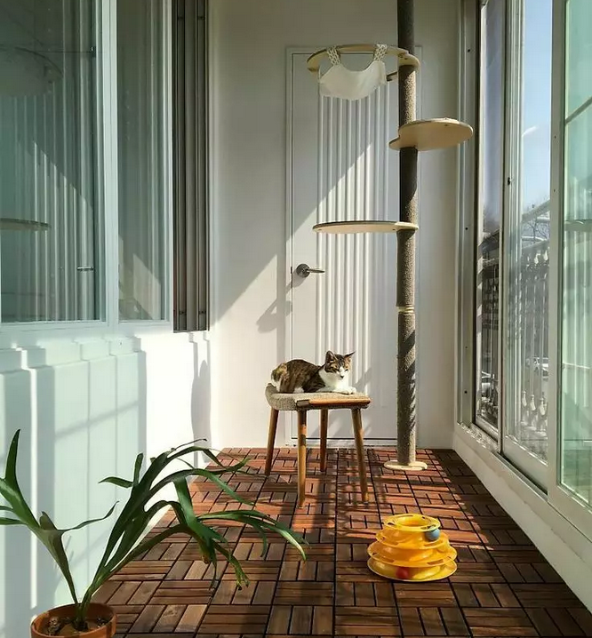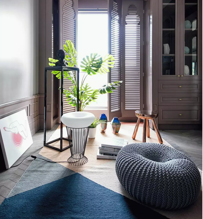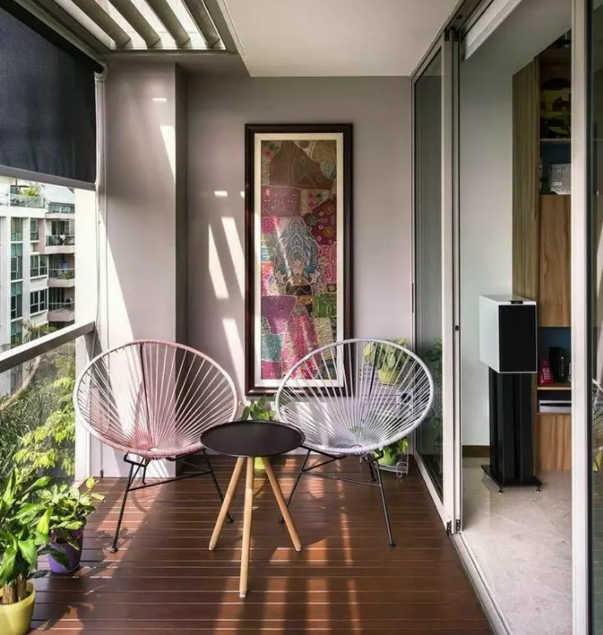 如果陽(yáng)臺(tái)所在的空間不大,又想有個(gè)獨(dú)立的空間,用來(lái)休息或冥想或靜靜發(fā)呆,可以用窗戶+一扇玻璃門來(lái)做空間的隔斷,即通透卻又能保障陽(yáng)臺(tái)區(qū)域的私密性。