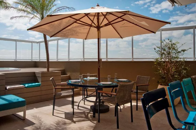 露臺(tái)中還可以擺上一方長桌,既可以和愛人在廣闊的天空下共進(jìn)浪漫的晚餐,還能邀上三、五好友,一起燒烤暢飲,快樂人生。