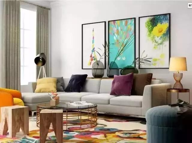 與黑白灰相比,彩色的掛畫顯得活潑而又生動。
