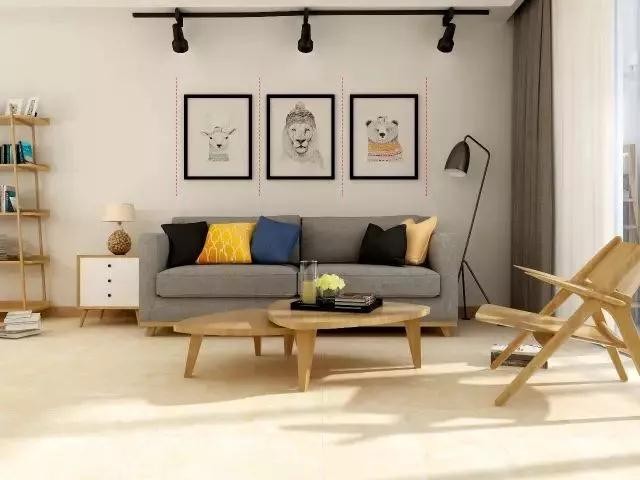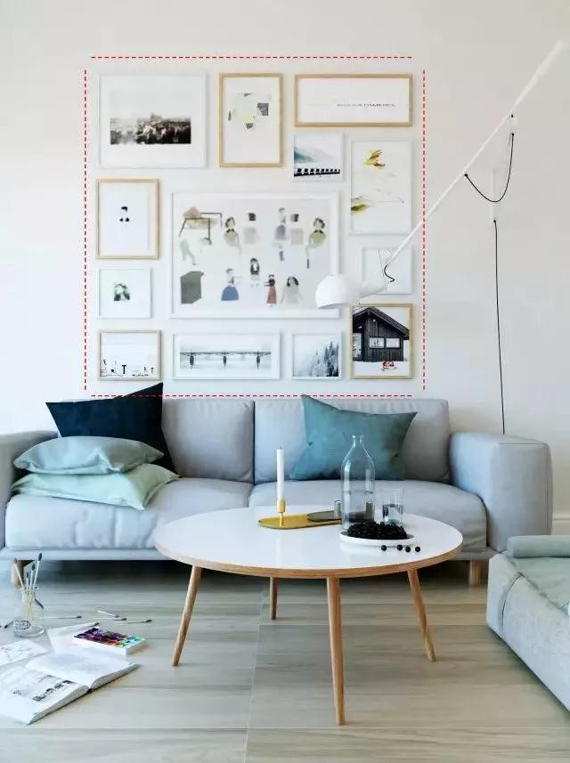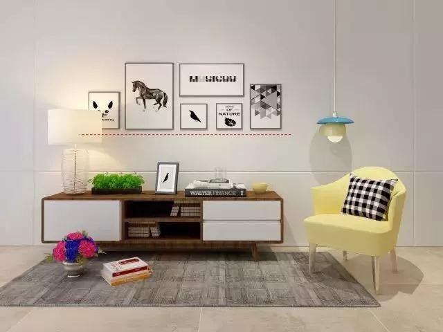均衡法:根據(jù)軟裝來決定掛畫的大小和數(shù)量,以統(tǒng)一規(guī)格平排。