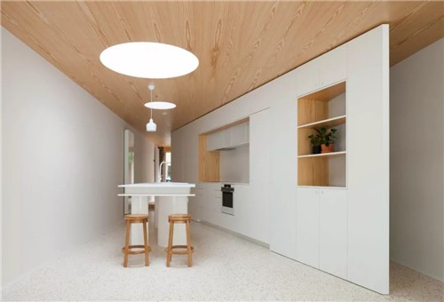 設(shè)計師在長條形狀的房子內(nèi)插入了一個三角形設(shè)計