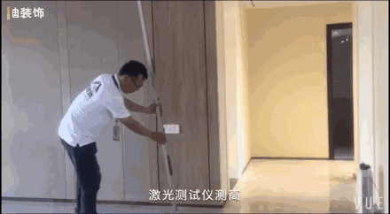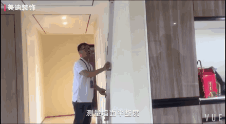 美迪監(jiān)理鐘玉林正在進(jìn)行墻面垂直平整度檢查,他說墻角偏差與墻面垂直平整度這兩項(xiàng)指標(biāo)除了能體現(xiàn)房子墻面的外觀美感,還能檢查出墻面的結(jié)構(gòu)是否有問題。