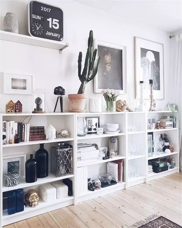 開放式架子可以增加小房間深度,降低沉重感,還能當(dāng)作展示架。