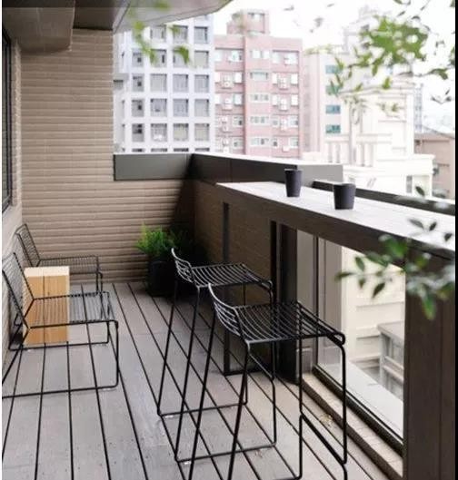 面積比較小的陽臺可以考慮一下改造成休息區(qū),可以像變下面這樣的mini餐桌和自己愛人來一場浪漫的燭光晚餐。