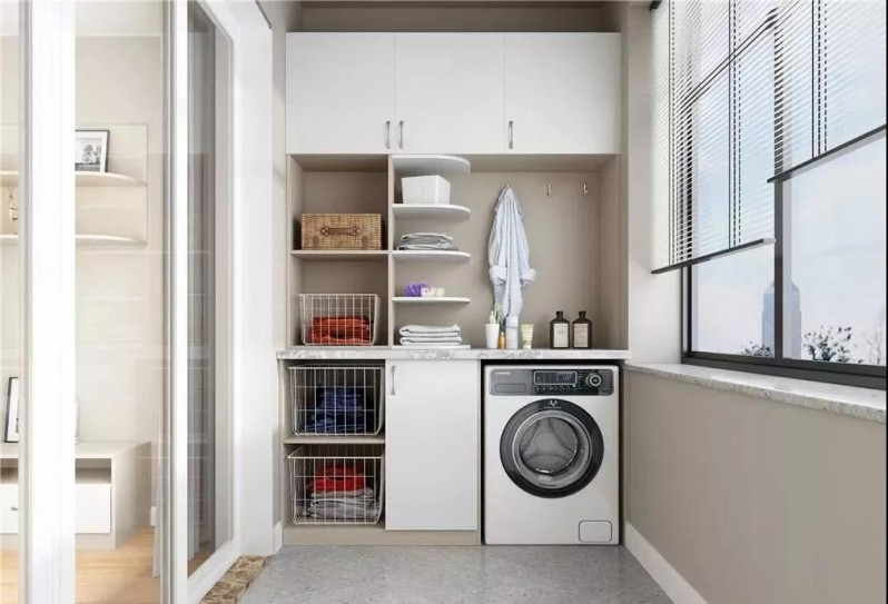 把陽臺改造成洗衣區(qū)是比較常見的做法了,有些衛(wèi)生間可能本來就不是很大,放下一個洗衣機會顯得更擁擠,這時候陽臺就是個很好的選擇了。