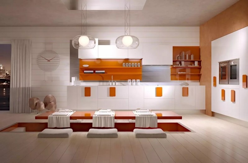 亮眼的廚房,做低的餐桌,頗有日式風(fēng)的新鮮,主賓能促膝長談。