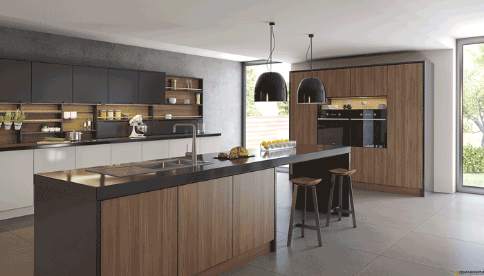 智能廚電都知道吧,是現(xiàn)代家庭的廚房必備之物了,像烤箱蒸箱以及消毒柜等都是可以鑲嵌到櫥柜里的,但是有一個要求,那就是先量好廚電的尺寸,以免柜子大小與廚電大小搭配不上,一切都是白搭;另外,家里想要設(shè)計地柜的,在地柜設(shè)計上也可以有花樣,比如設(shè)計成那種可以將小家電收納起來的地柜,要用的時候講屜子拉出來,不用時又推進去,外觀上十分整齊干凈。