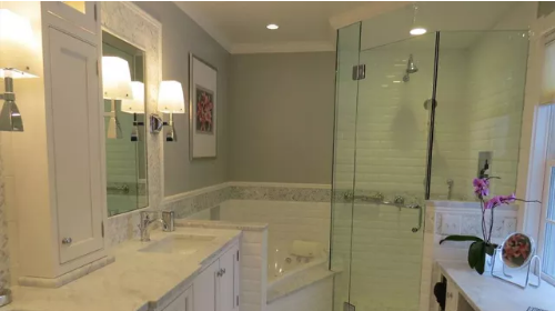 衛(wèi)生間附近有洗衣區(qū),洗衣機周圍可以安置一個量身定做的柜子,放著一些消毒液、洗衣液、軟化劑等存放洗滌用品,便于洗衣機的使用。馬桶周圍同樣可以設(shè)置吊柜,儲物柜,用于存放垃圾桶、廁紙,以及臨時存放書報等。鏡子的設(shè)計同樣可以考慮鏡柜,這里面可以放好多東西,比如牙刷、牙膏、漱口水、梳子、口杯等,又干燥又整齊。