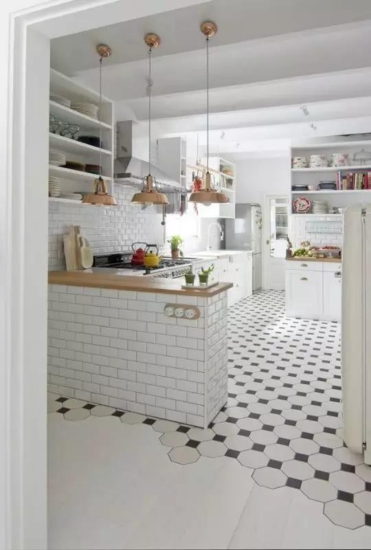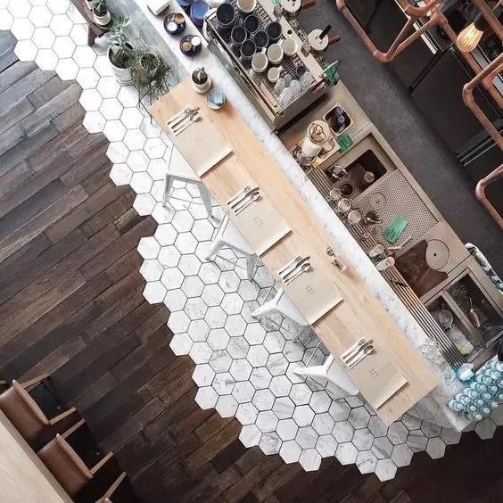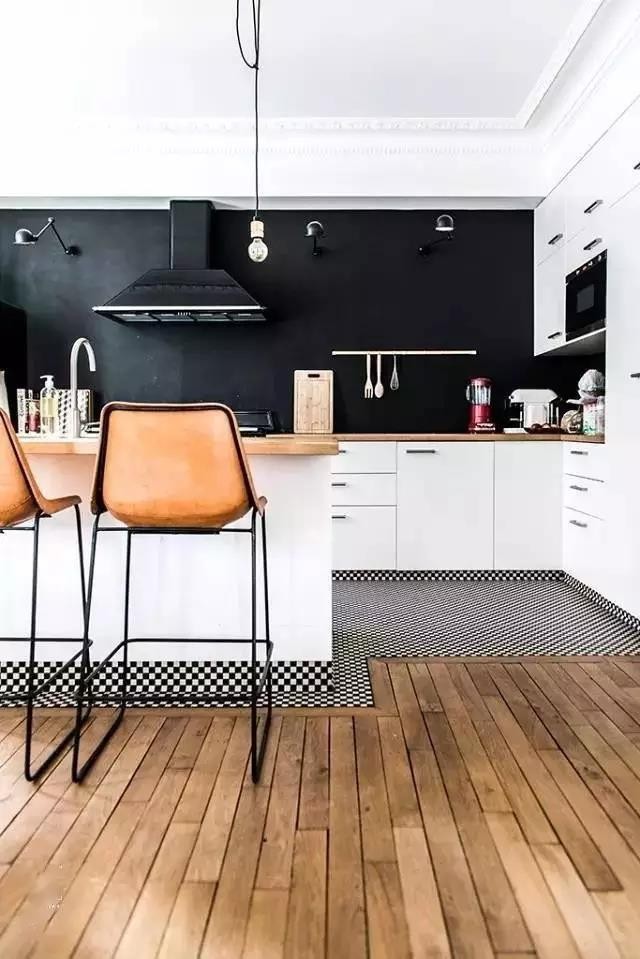比如廚房和餐廳就是最適合用瓷磚和地板拼接的區(qū)域,廚房多油煙,不適合鋪木地板,比較難以清理,鋪瓷磚就方便很多,瓷磚的油污相對來說就很容易清理了。