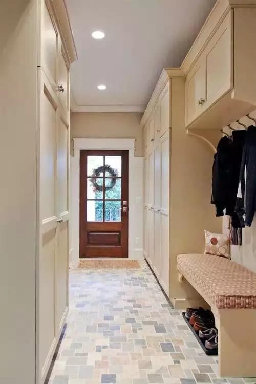 在進(jìn)門處也可以設(shè)計出一塊屬于衣帽間的小天地,其實(shí)非常方便進(jìn)門以及出門的時候在門口處整理自己的著裝。