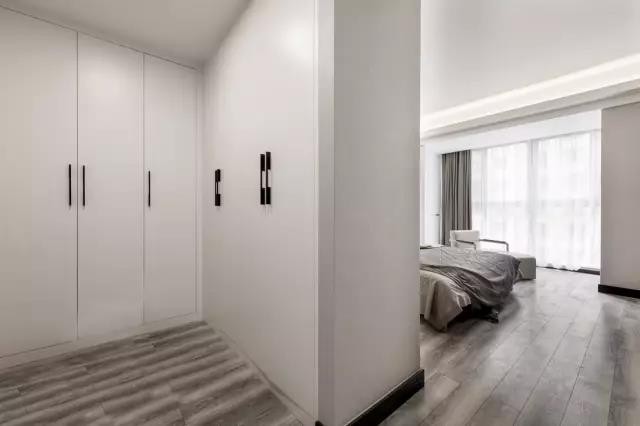 臥室里某一面墻較大的,可以把它利用起來裝成一整面的衣帽間,甚至可以通過開放式的掛鉤等形式,來實(shí)現(xiàn)自己夢寐以求的衣帽間小夢想。