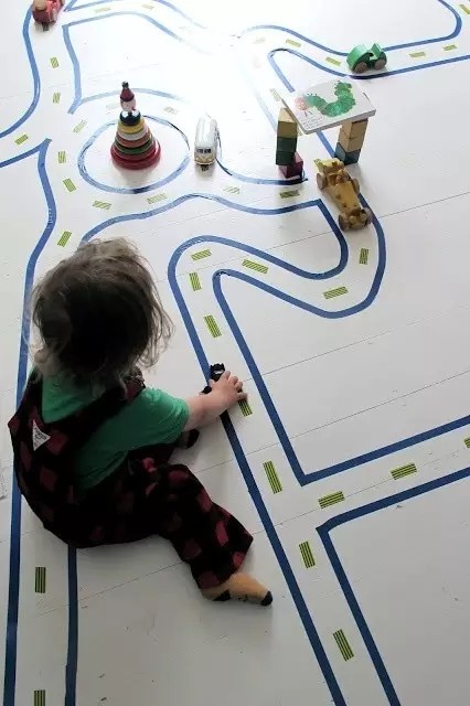 ▲ 把游戲軌道貼在地上。