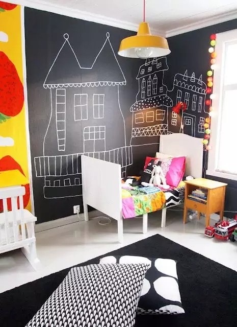 ▲ 可以畫黑板墻上,也可以畫在畫紙上。