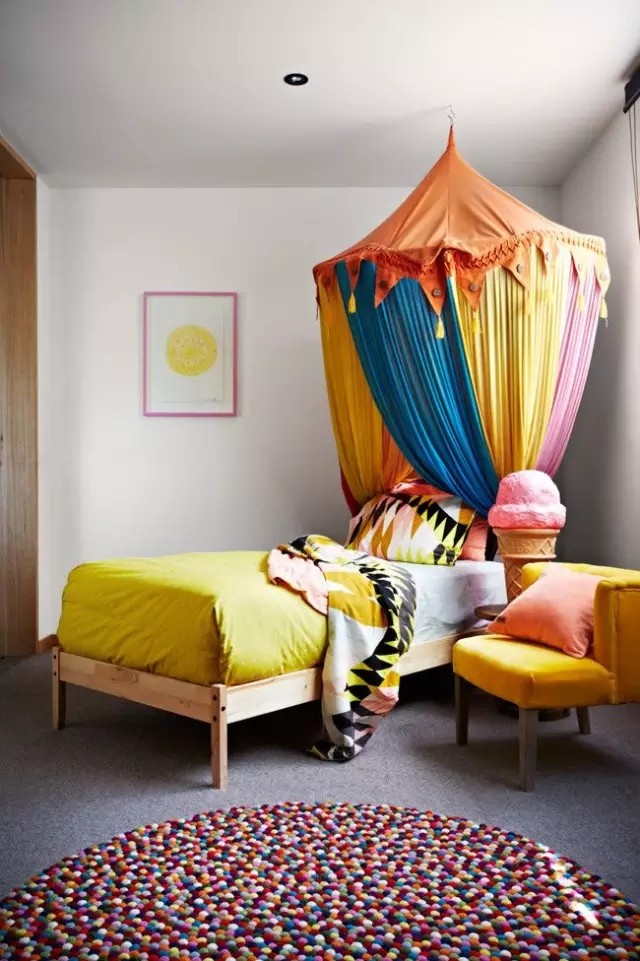 ▲ 馬戲團(tuán)造型的床幔,造型感十足。