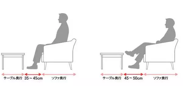 茶幾和沙發(fā)往往相愛相殺,離得過近影響走動,離得遠(yuǎn)又不方便拿東西。人處于正坐狀態(tài)下,茶幾到沙發(fā)的距離以35-45cm為宜,如果翹起二郎腿,處于放松的狀態(tài),需要的空間是45-50cm。