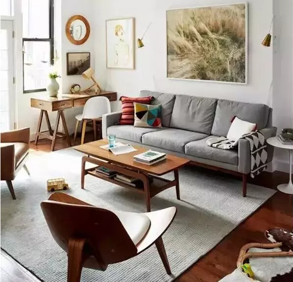 沙發(fā)放在客廳一定要協(xié)調(diào),有時候看了圖片就沖動想買買買,這樣是不理智的。如果客廳面積小,一定不要買大沙發(fā),通透的感覺很重要。如果房子住3-4個人,3米左右的長度就夠用。