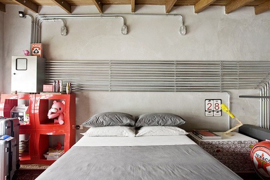 不要以為管道就只能在墻里為家里的水電工程做貢獻(xiàn),特別的金屬質(zhì)感也能在墻面裝飾上別樹一幟。