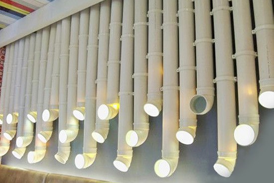 用管道來裝飾墻面是比較新穎的做法,年輕一族會(huì)比較喜歡。暗灰色的金屬,未經(jīng)涂飾的墻面,有一種工業(yè)時(shí)代的金屬感;白色的PVC管也能變成隨時(shí)點(diǎn)亮的墻面燈?;野档膲γ婧陀猩募揖?,組合成強(qiáng)烈的視覺效果。(圖片來源于網(wǎng)絡(luò),侵刪)
