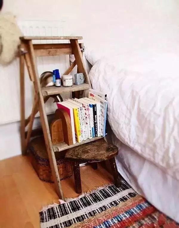 3.最最簡單的床頭柜設(shè)計,可存放書籍,也可放置零物件,只要一個隔板就搞定。