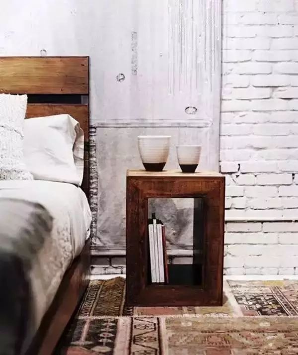 7.幾根實木板經(jīng)過設(shè)計師之手,立刻變成個性十足的床頭柜,梯形結(jié)構(gòu)可放置不同物件。