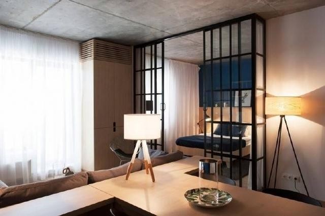 臥室與客廳之間是采用現(xiàn)在超級流行的黑框隔斷