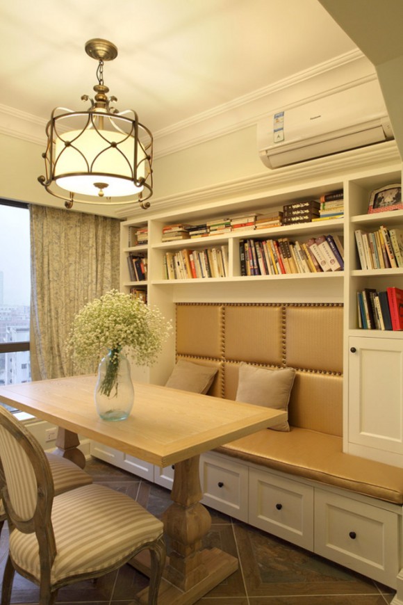 組合式書柜可以給書房空間帶來不少的活動空間,給人落落大方、干凈利落的感覺,簡潔的風(fēng)格會令你心境和思緒都更輕快些;同時編輯個人不怎么喜歡柜門,因為拿書不方便,像多寶格和開放式書柜這樣的設(shè)計,都會為讀寫環(huán)境提供更多的便利和保障。