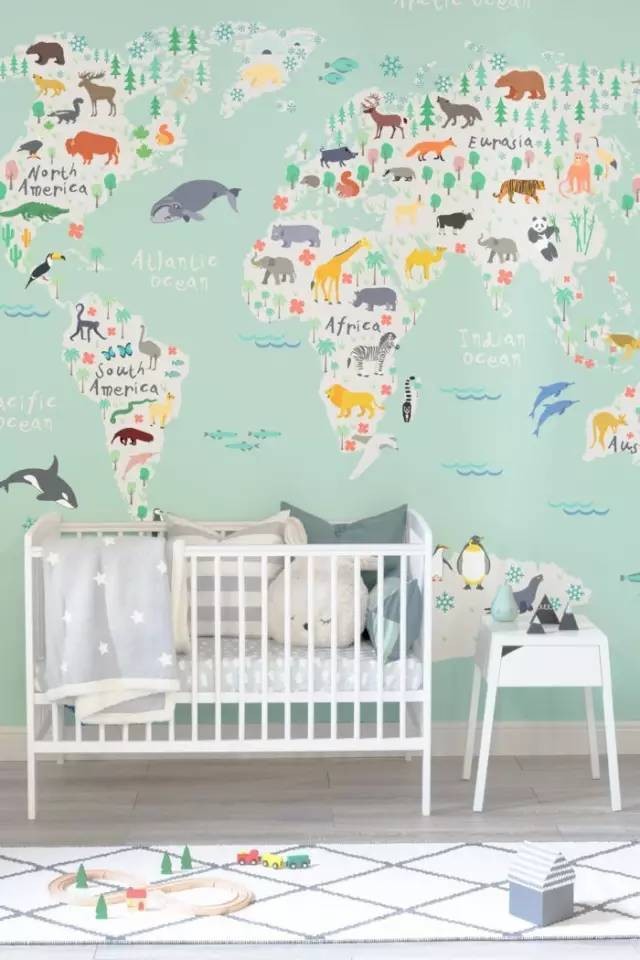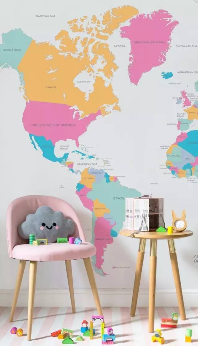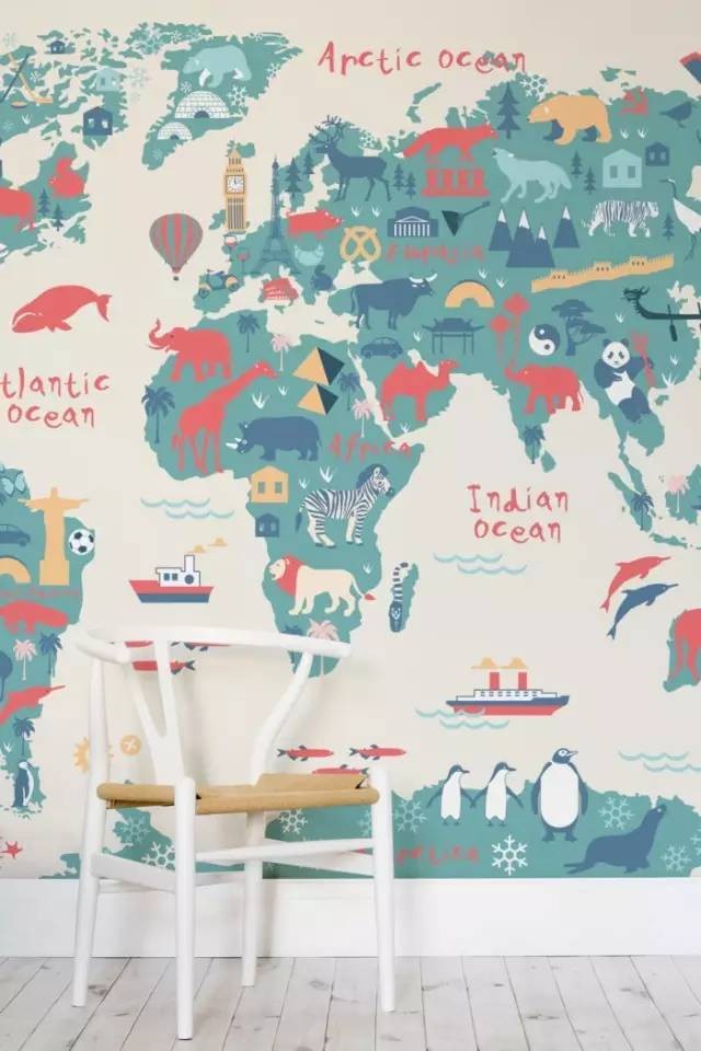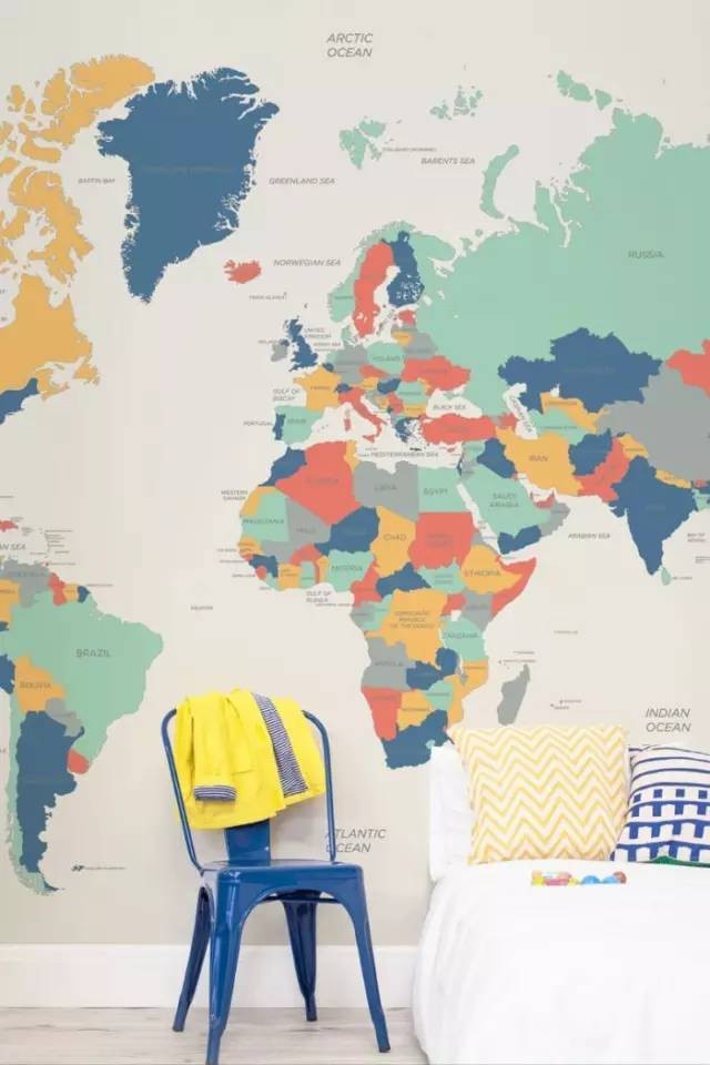 世界地圖的壁紙,最適合放在孩子房間了,有趣的圖案有助于激發(fā)孩子的學(xué)習欲望。