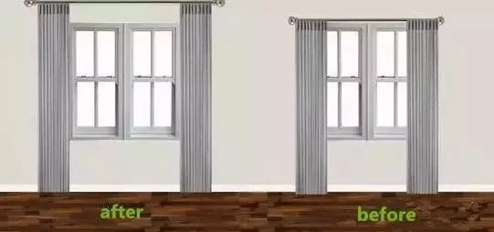 ● 拔高窗簾桿的高度:上至天花板、下至地板的窗簾自帶延伸效果,視覺上制造了一種更大的空間感。不信看下圖是不是感覺左邊的窗戶更大?