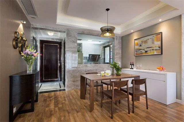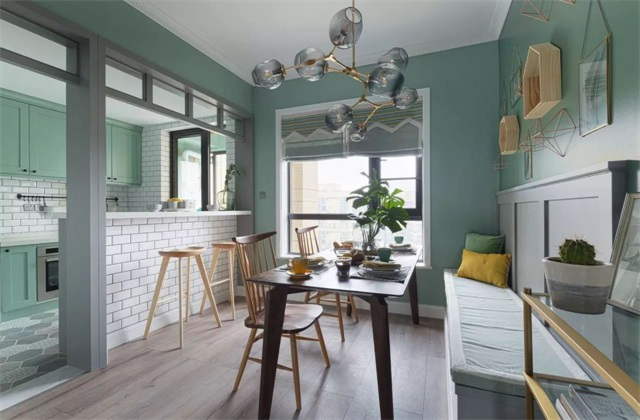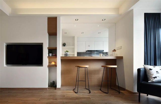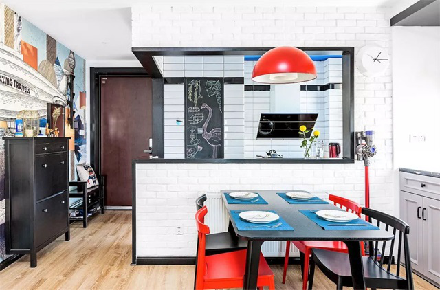 室內(nèi)每一個空間之間并不是完全獨立的,相互之間應(yīng)該有更多的互動。類似這樣在廚房開個窗洞,能享受開放式廚房的優(yōu)點,比如視野好、采光好、互動好,又可以通過窗戶或者玻璃來隔絕油煙問題。想象一下一家人有人在做飯,有人在餐廳擺餐具,孩子在客廳玩耍,都能相互看到,家庭溫馨感提升不少。