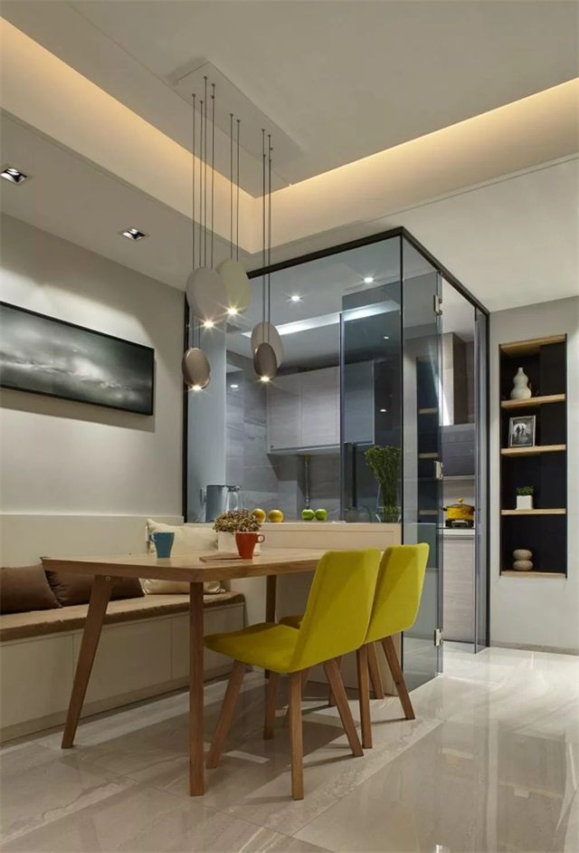 ▲ 實墻換成玻璃隔斷,介于開A放式和封閉式廚房之間
