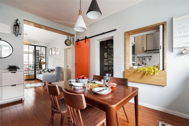 有些戶型廚房就在餐廳隔壁,但廚房門就是在另外一邊,這樣每次燒菜上菜都要繞一圈出來,雖然也沒多遠,但動線總是不夠順。如果在餐廳和廚房之間的隔墻上開個窗,就解決了傳菜問題,同時兼得采光等其他好處。