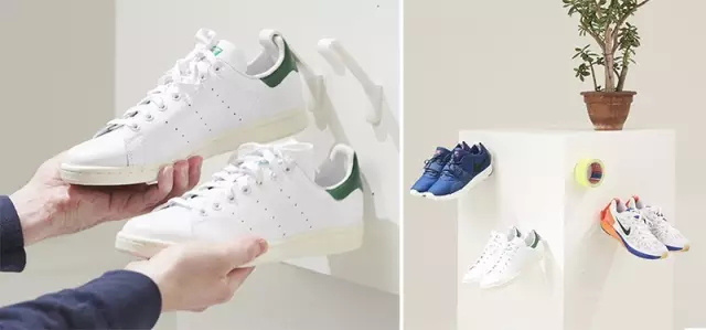 利用特制的鞋夾將運(yùn)動(dòng)鞋掛在墻上