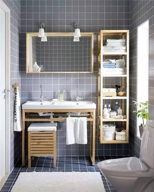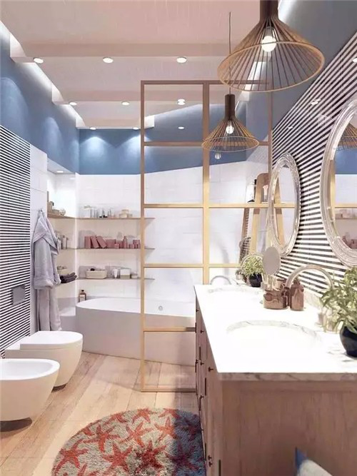 衛(wèi)生間材料選擇上,應少用布藝、實木等,多選擇防腐、防銹、防水和透氣性能好的材料。尤其是吊頂,要選擇透氣耐濕的材料,因為衛(wèi)生間的水蒸氣和濕地容易導致吊頂變質甚至腐爛。