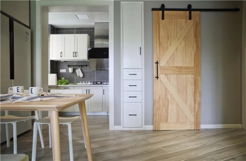 4、價格不貴。(一套谷倉門五金件大概幾百塊,再加上門片價格,很多情況下不用裝門套,甚至可以比普通門還省錢)