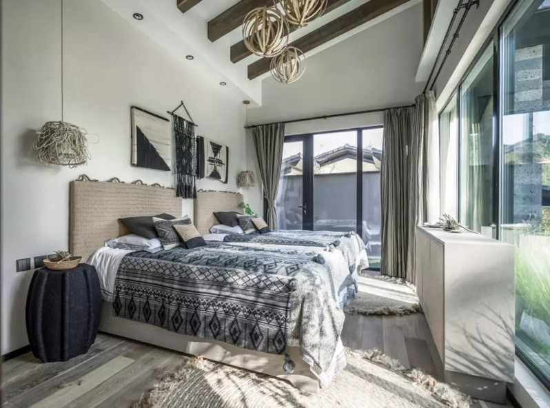 近年來很受歡迎,特別是民俗運(yùn)用最多。原木,或做舊的肌理,配以原生態(tài)掛飾,呈現(xiàn)出質(zhì)樸與返璞歸真的獨(dú)有氣質(zhì)。