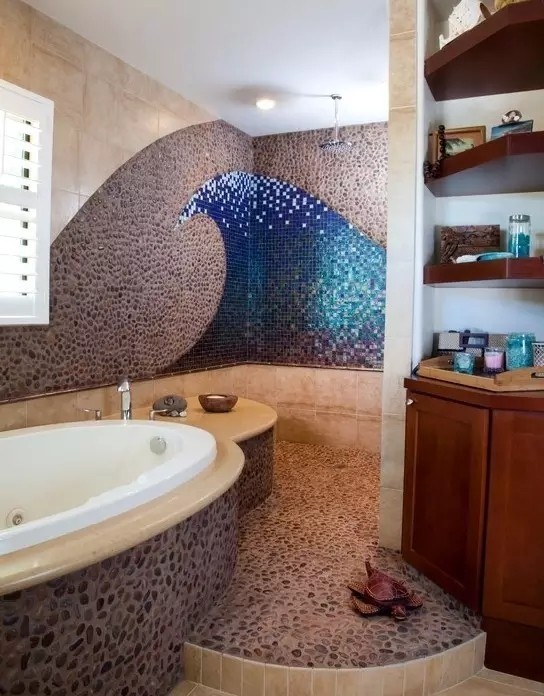 ▼地中海的味道,用藍(lán)色的馬賽克營造浪花的感覺。