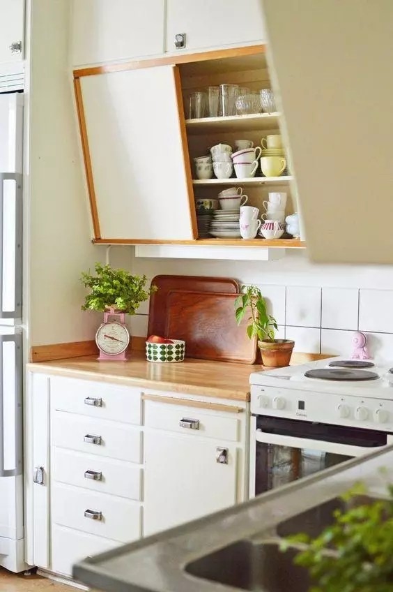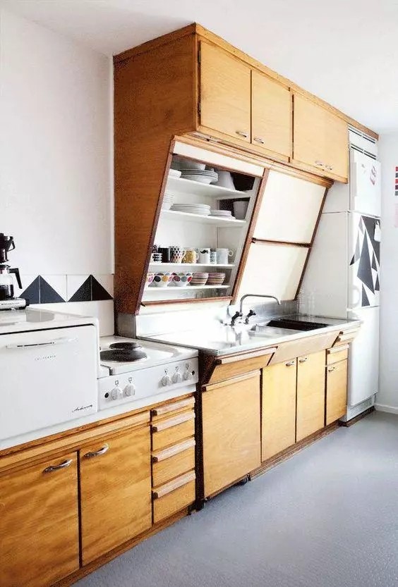 家里的廚房并不小,但是總覺(jué)得空間利用得不夠,于是空閑的時(shí)候就喜歡上網(wǎng)看看廚房裝修設(shè)計(jì)案例,看著看著發(fā)現(xiàn)不少人會(huì)把廚房的吊柜設(shè)計(jì)成傾斜式的,就像一個(gè)直角梯形。和傳統(tǒng)的吊柜除了外形不太一樣,還有就是柜門(mén),傾斜式的吊柜幾乎都是用推拉門(mén),沒(méi)有平開(kāi)門(mén),這又是為什么呢?