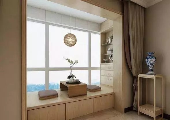 榻榻米還可以打造出一個(gè)休閑會(huì)客區(qū),閑暇時(shí)分,約上三五好友在此喝茶聊天,也是一大享受。