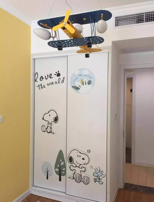 而對于家中兒童房的衣柜,還可以在上面貼上一些有趣又可愛的圖案,孩子一定也會喜歡的。當(dāng)然,至于具體貼什么,你可以征求孩子的意見!