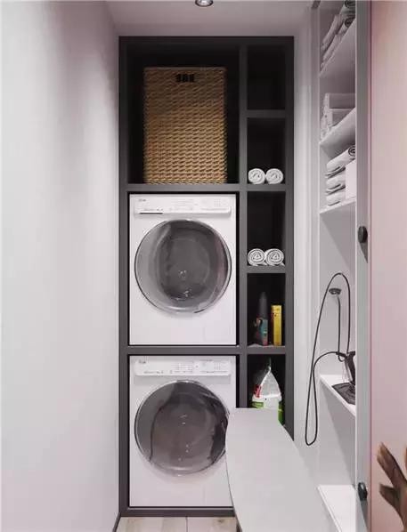 與生活區(qū)相鄰的地方做了洗衣間,能放置大量的日常生活用品。